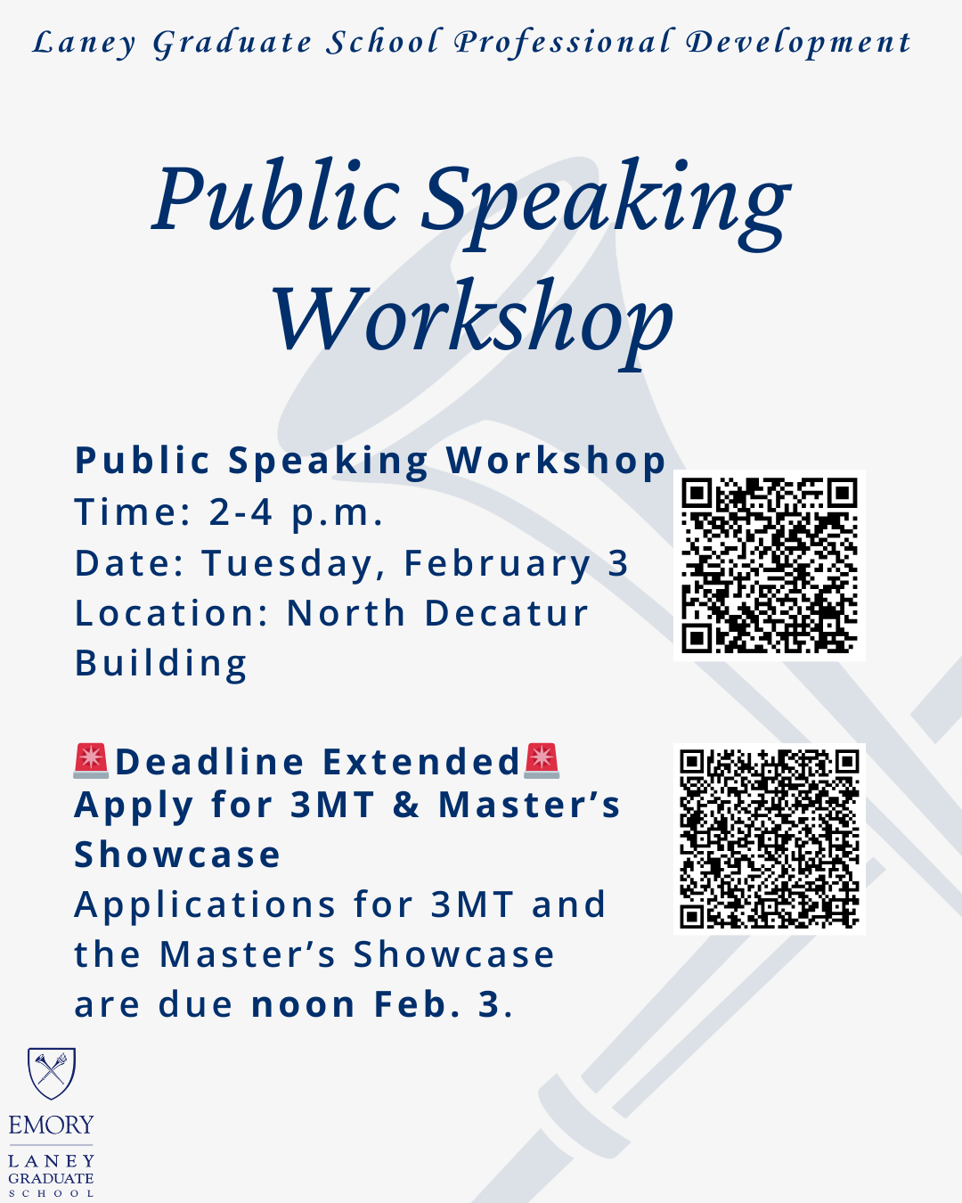 This spring, Laney Graduate School is continuing its Skills Training Lunch and Learn series, designed to equip students with practical skills that support academic success, research excellence, and professional growth.